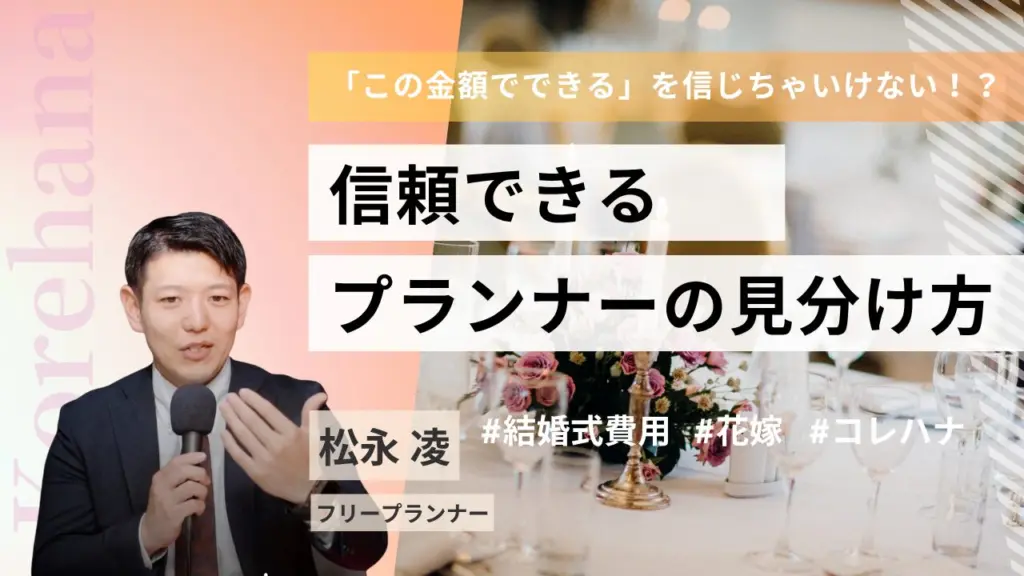 信頼できるプランナーの見分け方 未分類 2025/04/20 #pickup#youtube 「この金額でできます」――その言葉、鵜呑みにしていませんか?結婚式費用の“見積もりマジック”の裏側や、契約前に絶対確認しておくべきポイントをプロが解説します。賢く準備して、後悔のない結婚式を迎えましょう。 ...